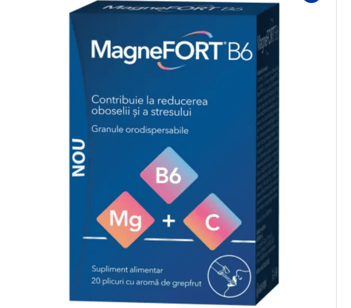 Supliment alimentar care contribuie la reducerea oboselii și extenuării, la funcționarea normală a sistemului nervos și la menținerea sănătății musculare. Combinația dintre magneziu și vitamina B6 sprijină echilibrul electrolitic și metabolismul energetic normal, fiind recomandată în perioade de stres, efort fizic sau mental intens, crampe musculare sau stări de iritabilitate.