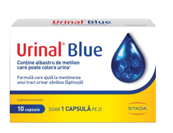 – in timpul utilizării Urinal Blue, urina poate fi colorată în verde sau albastru datorită prezenÈ›ei albastrului de metilen. Acest efect poate servi drept indicator vizual că produsul a fost absorbit È™i procesat de tractul urinar;